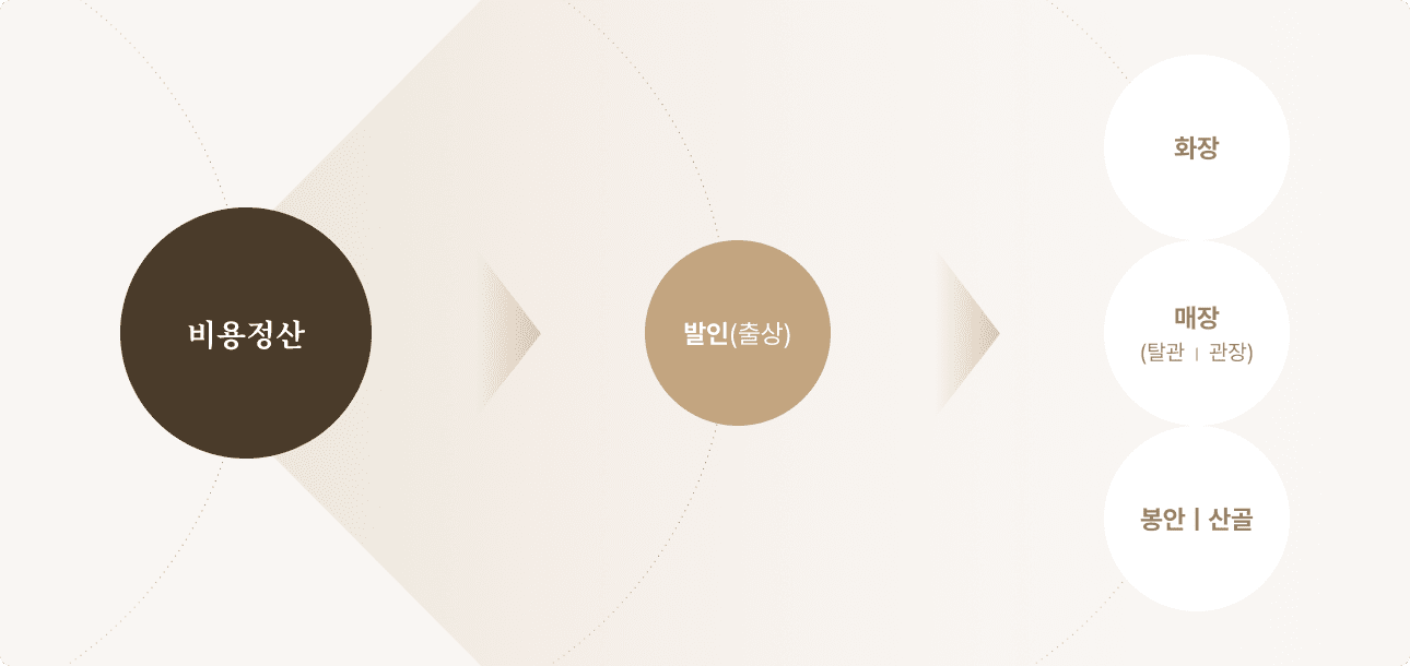 유가족과의 상담을 통해 빈소 사용, 제단 구성, 음식 준비 등 전반적인 의전 사항과 장례 일정 전체를 함께 정리합니다.